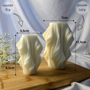 • ⚖️ GEWICHT & MAßE: Set aus 2 Kerzen (83g & 240g) | Die kleine Kerze ist 8,5 x 5,5 cm und die große Kerze 11,5 x 7 cm. Eine massive Deko-Kerze, die beeindruckt und lange brennt.