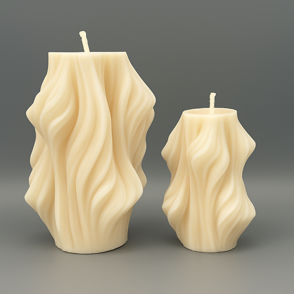Skulpturkerzen Set 2er | Organische Wellenform | Handgemacht aus Bio-Sojawachs | Design-Kerzen | Geschenkidee | Dekoration